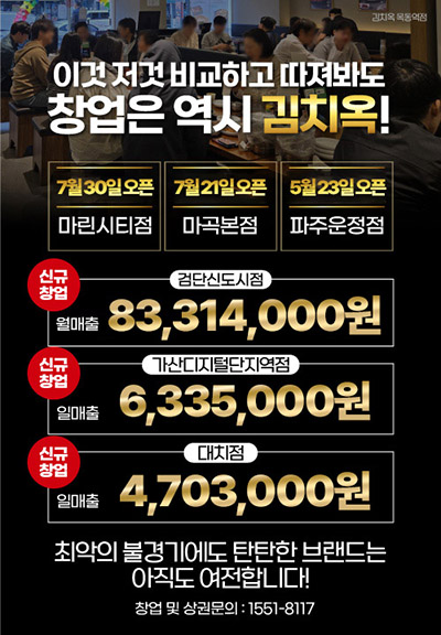 김치옥의 창업비용은 창업주분들의 맞춤 최저가 창업을 도와드리고 있습니다.